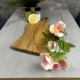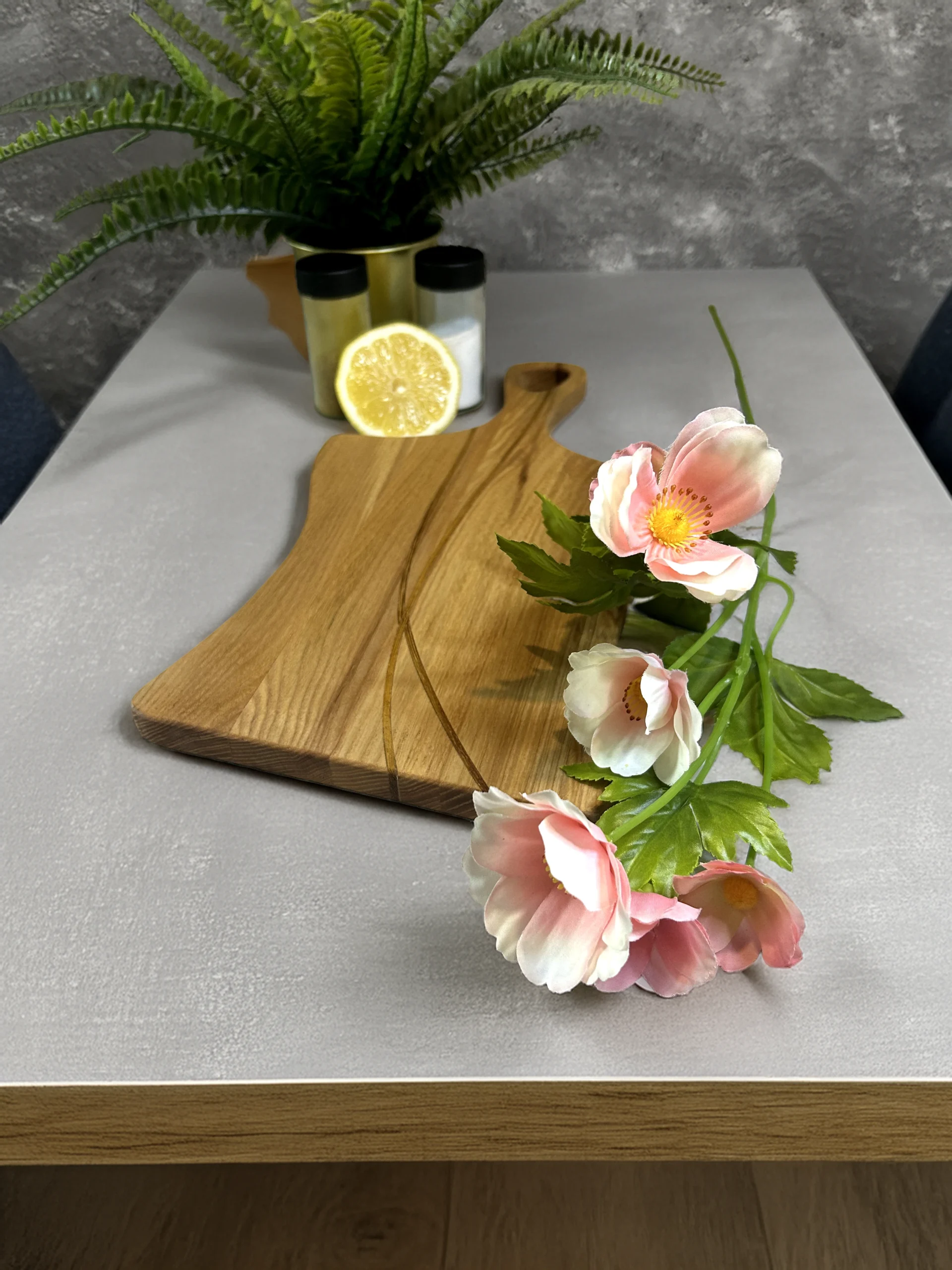 Ta niezwykle zgrabna dębowa deska z wygodną rączką to prawdziwa perła wśród akcesoriów kuchennych. Swój unikalny charakter zawdzięcza subtelnemu zdobieniu – tytułowej „Złotej Nitce” – czyli eleganckim, lśniącym liniom, które przepięknie kontrastują z naturalnym usłojeniem dębu. W przeciwieństwie do ciężkich desek rzeźnickich, ten model posiada klasyczny (prosty) układ włókien, co w połączeniu z ergonomicznym kształtem czyni ją lekką i bardzo poręczną. To idealny wybór do przygotowywania szybkich śniadań, krojenia cytrusów, ale przede wszystkim – do zjawiskowego serwowania porannych tostów, serów czy słodkich wypieków wprost na stół.
