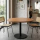 Stół został zaprojektowany z myślą o maksymalnym komforcie. Blat o średnicy 100 cm zapewnia optymalną przestrzeń dla kilku osób, zachowując przy tym kompaktowe wymiary, które nie przytłaczają wnętrza. Solidna, metalowa noga centralna (o wysokości 60 cm) zakończona szeroką, płaską bazą gwarantuje idealną stabilność. Brak tradycyjnych czterech nóg daje użytkownikom pełną swobodę i mnóstwo miejsca pod stołem.